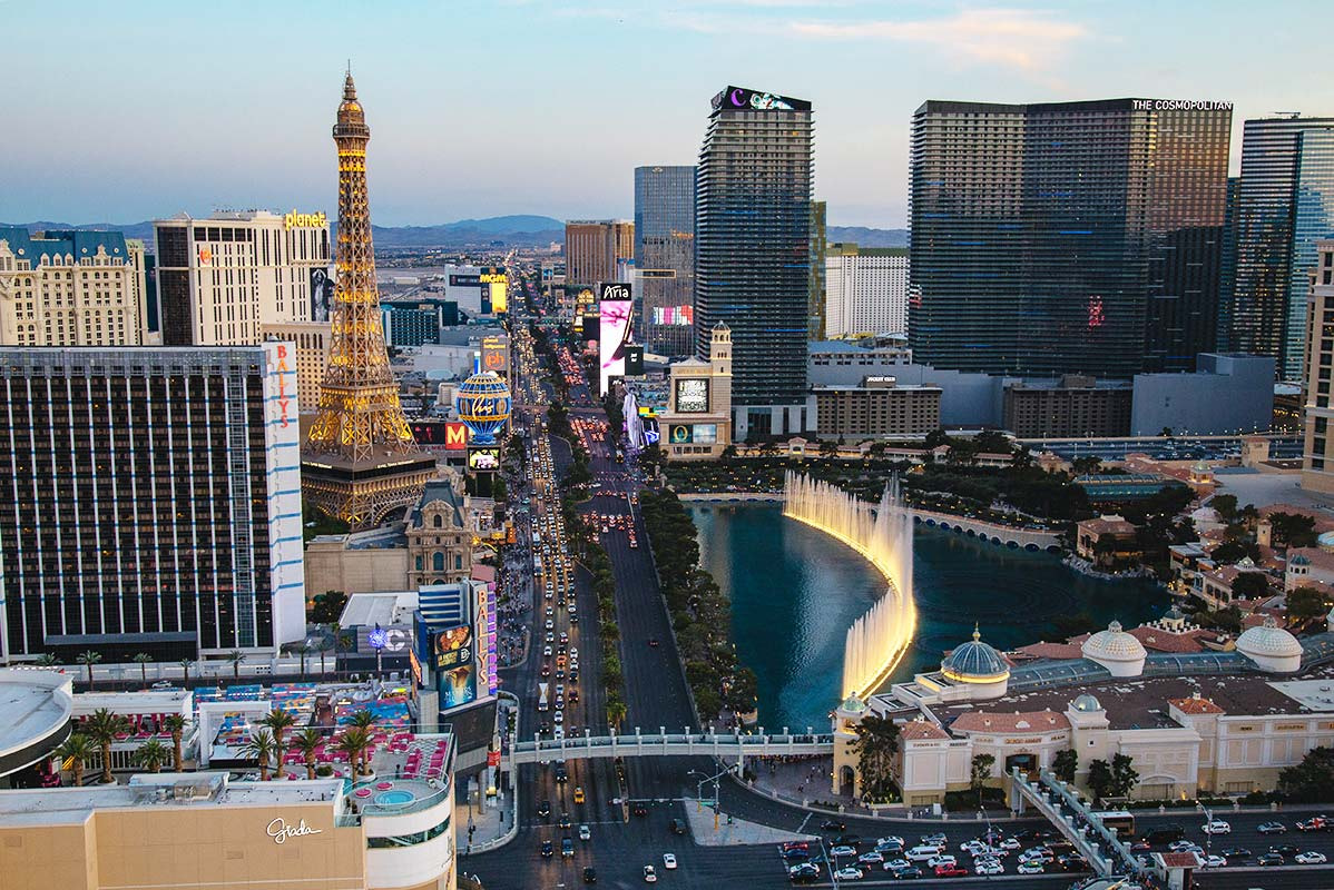 Your adventure begins when our helicopter pilot heads toward Red Rock Canyon and flies you by the beautiful Spring Mountains just five miles from the city limits. You’ll see the flat land rising into colorful cliffs formed along the Keystone Thrust. This fault zone has peaks over 8,000 feet composed of orange, pink, red, white and grey sandstone. During this portion of your Las Vegas VIP tour you will also see Calico Hills, Calico Tanks, Icebox Canyon, La Madre Spring, Lost Creek Canyon, Pine Creek Canyon, Spring Mountain Ranch and Spring Canyon. And that’s just the first half of this VIP experience! Next you’ll fly over the Las Vegas Strip, where the streets are always crowded and the lights are always on.